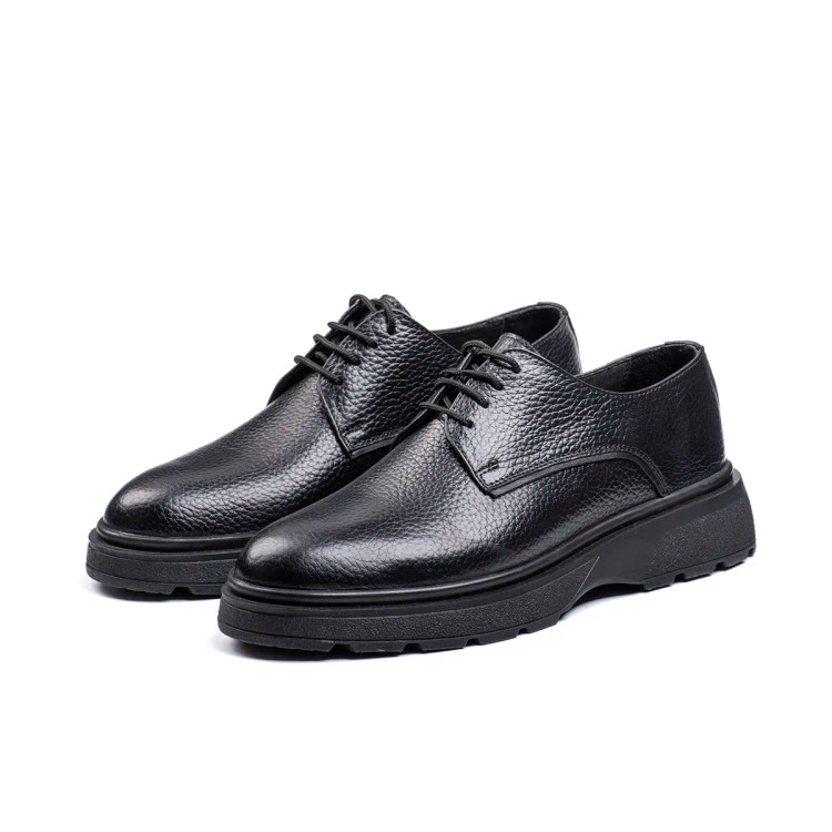 استفاده از چرم طبیعی در تمام بخشهای اصلی کفش، کیفیت ساخت بالا و عمر مفید طولانی را تضمین میکند. زیره پیو علاوه بر سبکی، انعطاف مناسبی دارد و برای استفاده روزانه کاملاً استاندارد است.