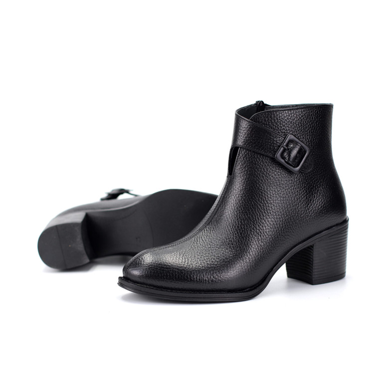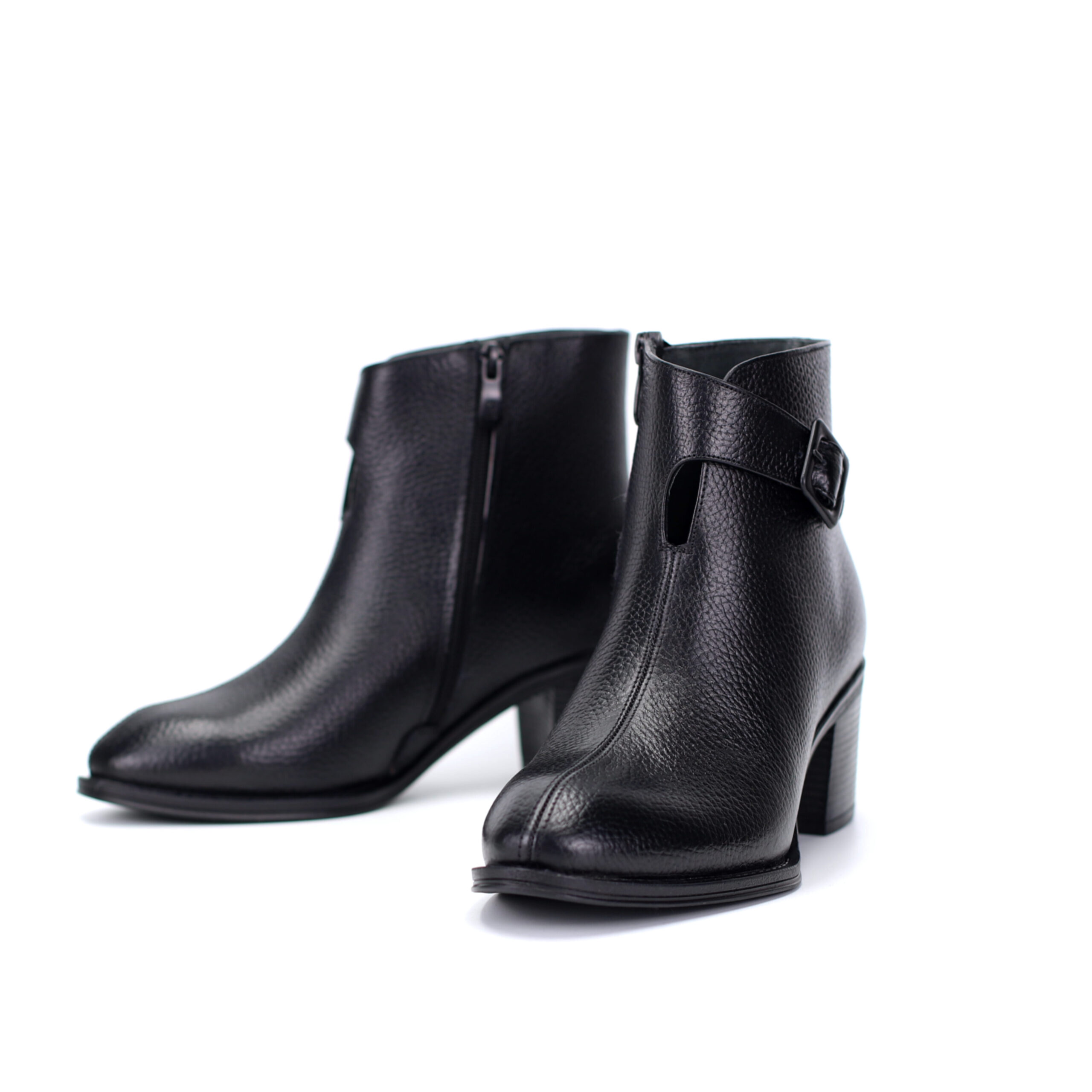 نیمبوت زنانه مدل مارین ترکیبی هوشمندانه از طراحی کلاسیک، ظرافت زنانه و راحتی واقعی است. این مدل با استفاده از چرم طبیعی گاوی در رویه، ظاهری شیک و رسمی دارد که بهراحتی با استایلهای روزمره، اداری و نیمهرسمی ست میشود.